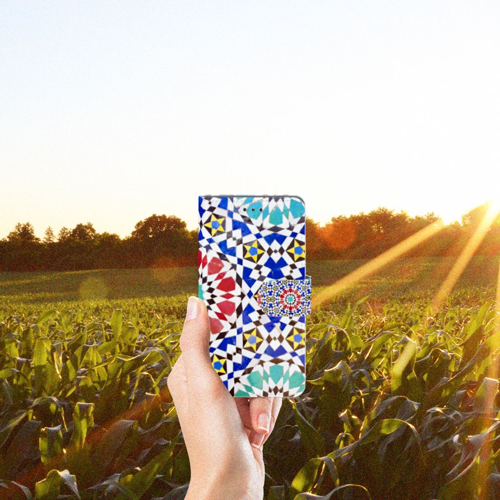 Aan design hoesjes met kunstvormen geen gebrek in onze uitgebreide collectie. Wat dacht je van dit design hoesje met Mozaïek . Dit is een kunstvorm waarbij een grote afbeelding wordt gemaakt uit een groot aantal kleine gekleurde steentjes (tesserae), die in een vloer of wand worden gemetseld. Deze gekleurde steentjes zie je terug op dit boekhoesje met design van mozaïek. Een boekhoesje is zo’n beetje de veiligste case die er bestaat. Een Nokia 7 Bookcase met print zorgt voor een volledige bescherming van je smartphone en wordt aan alle zijden bedrukt met mozaïek. Een deel van de foto’s staat ook op het lipje aan de buitenzijde. Verder is de houder aan de binnenzijde van TPU. De Grieken en Romeinen beheersten de kunst al. Op diverse plaatsen in Europa zijn mozaïeken teruggevonden die tot op de dag van vandaag goed bewaard zijn gebleven. Met een hoesje met mozaïek blijft jouw telefoon in tact. Je pasjes en briefgeld kun je in de vakjes aan de binnenzijde stoppen