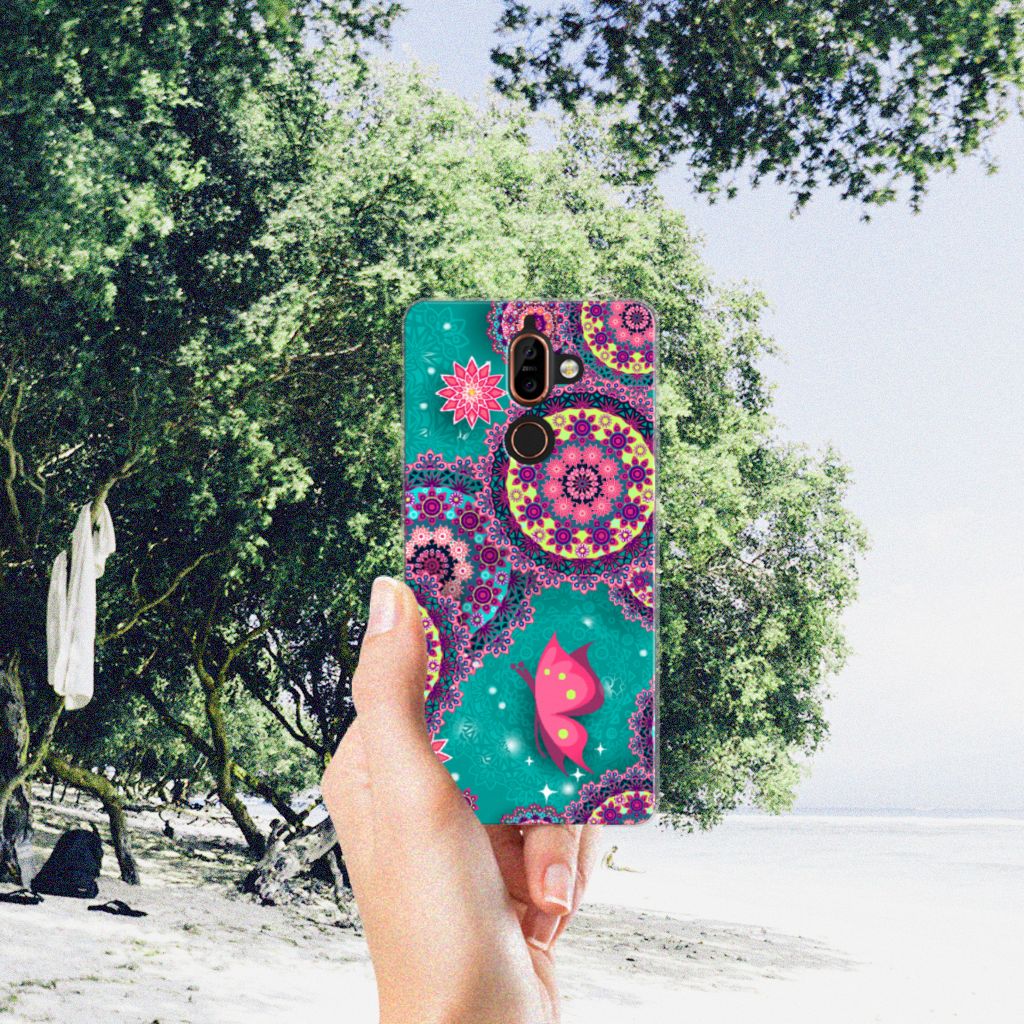 Deze opvallende Nokia 7 Plus Hoesje maken met Cirkels en Vlinders is een ware eyecatcher. De meeste vlinders hebben een onopvallende vleugelkleur en dat kun je van de soort op dit hoesje ook zeker wel zeggen. Wij kunnen deze opvallende vlinders en cirkels op een zeer handige tpu case zetten. Deze hoesjes zijn gewild omwille hun flexibiliteit. Met onze geavanceerde printer zetten we de print van opvallende vlinders en cirkels op de achterkant van het hoesje. De case met vlinders en cirkels blijft aan de zijkanten doorzichtig, zodat je maximaal het design van je smartphone behoudt. Verder is je telefoon natuurlijk goed beschermd met deze tpu case met print van blauwe vlinders. De bovenkant wordt bedrukt, de zijkanten niet. Met een screenprotector bescherm je ook het scherm maximaal.