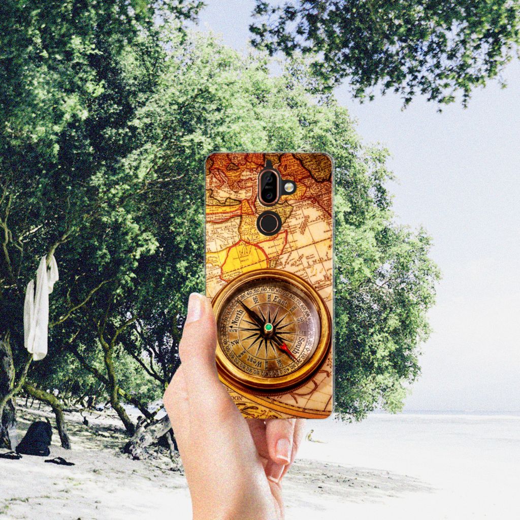 Nokia 7 Plus TPU Siliconen Hoesje Marmer Zwart - Origineel Cadeau Vader