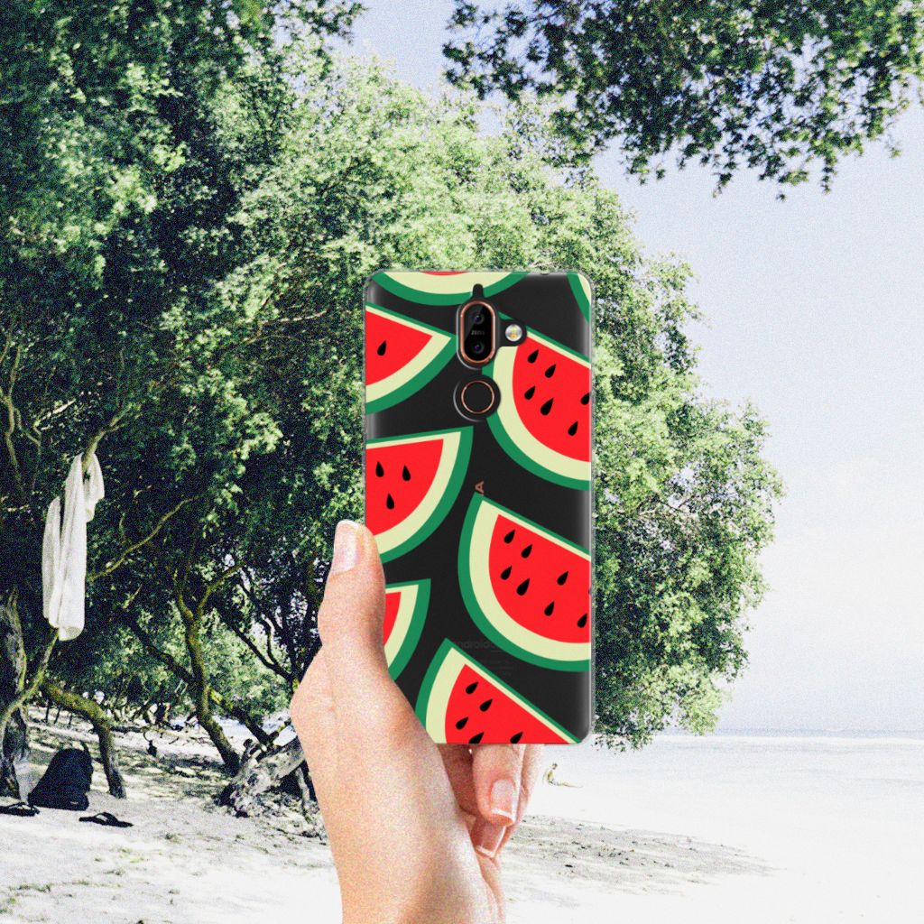 Watermeloenen zijn uitstekende dorstlessers, misschien dat je daarom juist in de zomermaanden extra enthousiast raakt van dit design hoesje Watermelons. Jij blijft gezond als je zo nu en dan een watermeloen neemt, jouw smartphone blijft in tact als je er deze Nokia 7 Plus Siliconen Case omheen doet. Deze tpu case wordt alleen aan de bovenkant bedrukt met watermeloenen is zeer flexibel. De randen van het hoesje blijven transparant. Je kunt ook kiezen voor andere soorten fruit op je hoesje. Kijk maar eens naar onze andere design hoesjes op onze website.
