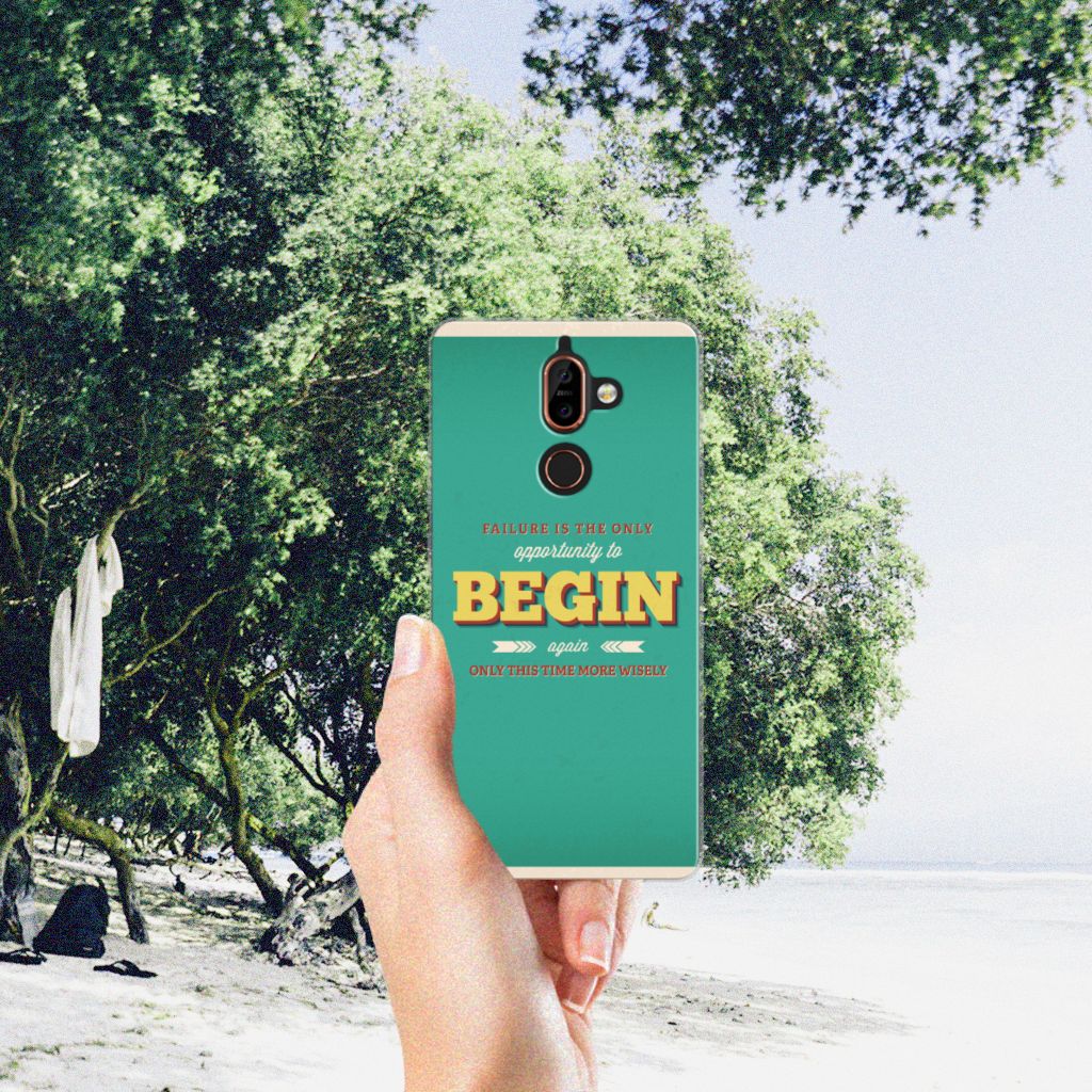 Ben je op zoek naar een uniek telefoonhoesje voor je Nokia 7 Plus? Dan ben je bij B2C Telecom aan het juiste adres! Speciaal voor jou hebben we dit prachtige Quote Begin design in onze collectie hoesjes opgenomen. Het design wordt bedrukt op een Siliconen hoesje met naam en is gemaakt van flexibel rubber. Het design wordt alleen aan de bovenkant van het hoesje bedrukt en de randen blijven transparant. Aan de zijkanten zijn uitsparingen gemaakt waardoor je met gemak alle knoppen en poorten kunt bedienen. Wij adviseren om dit hoesje in combinatie met een screenprotector te gebruiken voor een langere levensduur van je telefoon. Wil je dit design hoesje nog iets extra's geven? Voeg dan gratis je naam of een quote toe! Is dit design hoesje toch niet helemaal wat je zocht? Ontwerp dan zelf een hoesje in ons ontwerpprogramma.