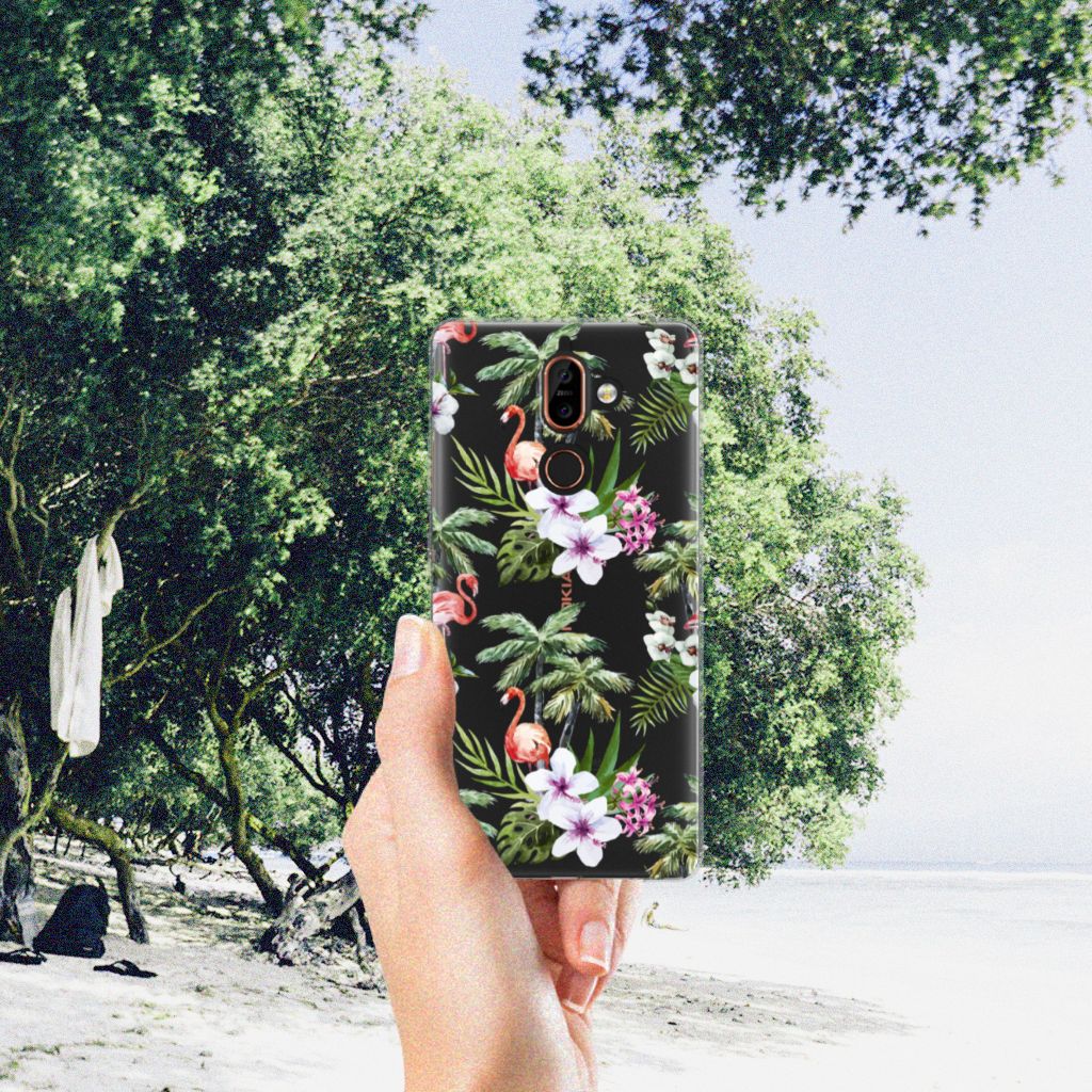 Nokia 7 Plus Silicone-hoesje Flowers Blue DTMP
