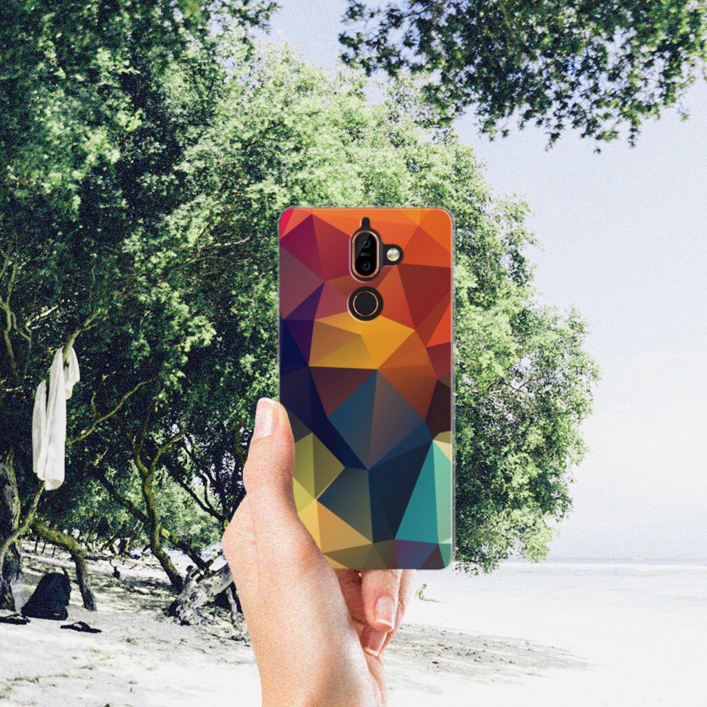 Veelkleurige driehoeken die samen eindeloze asymmetrische patronen lijken te vormen. Het is het abstracte schouwspel dat op dit fraaie hoesje voor je Nokia 7 Plus direct de aandacht trekt noemen we voor het gemak trekt noemen we voor het gemak Polygon Color. De een ziet er een berglandschap in, de ander piramides. Wat zie jij erin? Zeker is in elk geval dat de aanblik van dit fascinerende ontwerp je niet snel gaat vervelen. Het kleurige spel van lijnen en vlakken blijft eindeloos boeien en geeft jouw TPU Hoesje een hippe en kunstzinnige uitstraling. De kracht die het lijnenspel uitstraalt, komt ook terug in het hoesje zelf. Dit hoesje wordt alleen aan de bovenkant bedrukt en is zeer flexibel. De randen van het hoesje blijven transparant. Wat wil je nog meer?