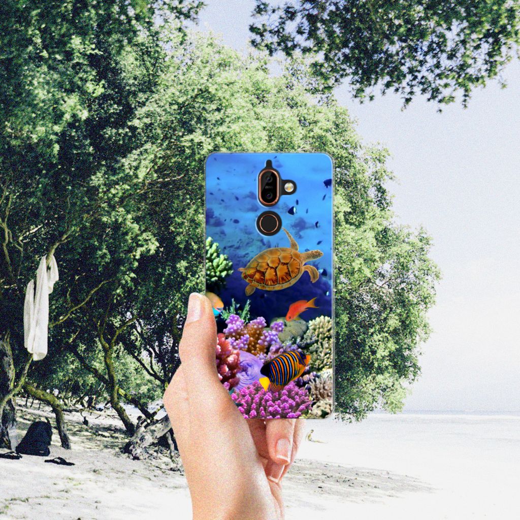 Dit kleurrijke hoesje met tropische Vissen is een ware eyecatcher. Als je aan het duiken bent en je treft een school aan met dit soort opvallende vissen, dan heb je een geweldige ervaring. Maar je hoeft er eigenlijk niet per se het water voor in te duiken. Want wij hebben een schitterende verzameling vissen op dit design hoesje gezet. Met onze zeer geavanceerde printer zetten we de afbeelding van vissen op de bovenkant van de Nokia 7 Plus TPU Hoesje, de randen blijven transparant. De case is gemaakt van zeer elastisch en onbreekbaar materiaal. Verder is je telefoon natuurlijk goed beschermd met deze tpu case met print van vissen. Deze case heeft tevens opstaande randen, waardoor je scherm de grond niet zal raken als de smartphone uit je handen valt.
