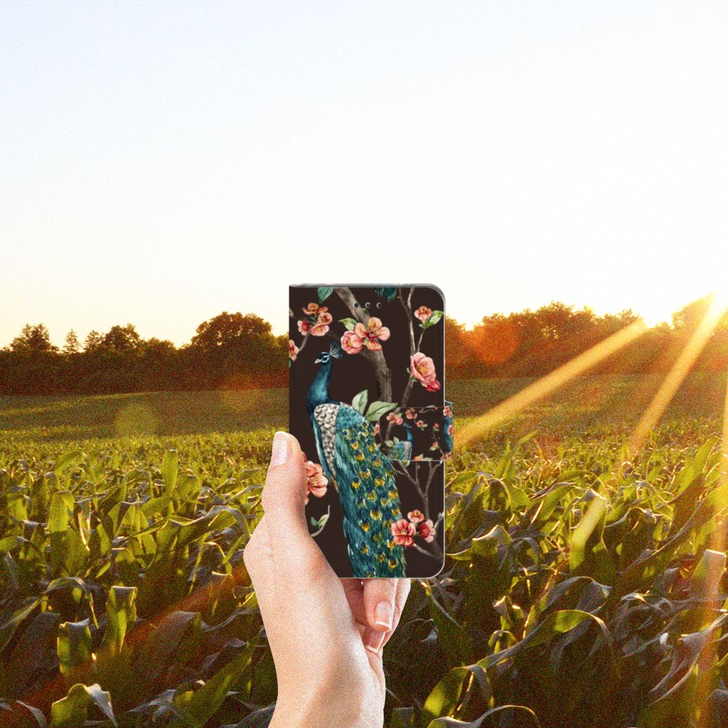 Nokia 7 Telefoonhoesje sluit met magnetisch lipje Pauw | Bloemen