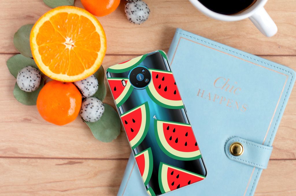Watermeloenen zijn uitstekende dorstlessers, misschien dat je daarom juist in de zomermaanden extra enthousiast raakt van dit design hoesje Watermelons. Jij blijft gezond als je zo nu en dan een watermeloen neemt, jouw smartphone blijft in tact als je er deze Nokia 8.3 Siliconen Case omheen doet. Deze tpu case wordt alleen aan de bovenkant bedrukt met watermeloenen is zeer flexibel. De randen van het hoesje blijven transparant. Je kunt ook kiezen voor andere soorten fruit op je hoesje. Kijk maar eens naar onze andere design hoesjes op onze website.