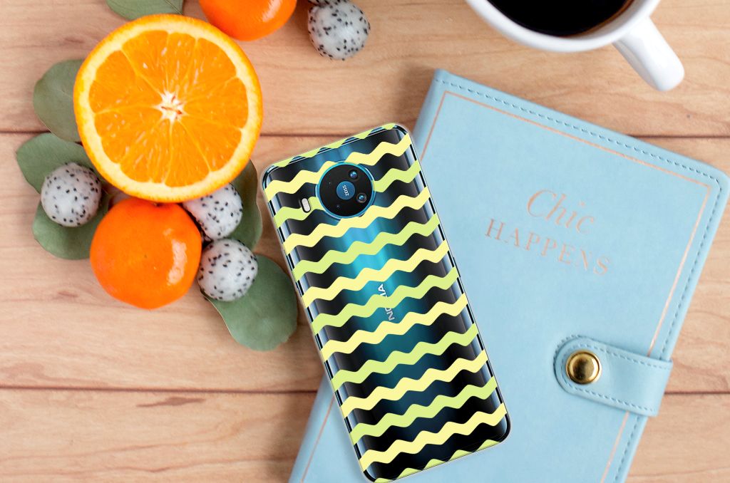 Dit Waves Yellow design hoesje met licht groene en gele golven is speciaal ontworpen voor jouw telefoon. We hebben een vleugje lichtgeel toegevoegd, zodat de case er een beetje spannender en leuker uitziet. Dit licht groene hoesje met licht groene golven ziet er oogstrelend uit. Het wordt in ons eigen magazijn bedrukt, in zeer goede kwaliteit inkt. Wij kunnen dus een zeer duurzaam hoesje met licht groene golven garanderen. Dit hele mooie Nokia 8.3 TPU bumper heeft vele extra’s. Is dit licht groene design hoesje je op het lijf geschreven? Grijp dan nu je kans. Deze TPU case met lichtgroene golven wordt alleen aan de bovenkant bedrukt en is zeer flexibel. De randen van het hoesje met licht groene golven blijven transparant en worden niet bedrukt. Met dit hoesje past jouw telefoon altijd in je broekzak.