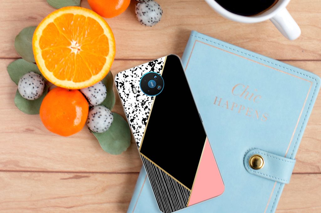 TPU Hoesje Nokia 8.3 Zwart Roze Vormen Design