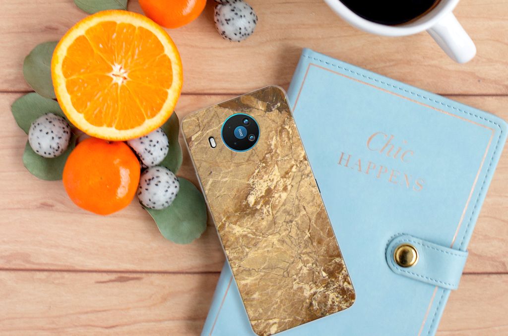 Dit design hoesje met Marmer in lichtbruine kleur is voor de artistiekelingen onder ons. De Grieken en Romeinen wisten het marmer al te waarderen door het in de bouw toe te passen. Naast het witte marmer zijn de diverse soorten marmer in een gevarieerde kleurensamenstelling te krijgen. We hebben verschillende mooie kleuren op design hoesjes gezet, zoals in dit geval het lichtbruine marmer. Dit is een Nokia 8.3 TPU Siliconen Hoesje met marmer in lichtbruine kleur. Het marmer wordt bedrukt op de voorkant van een tpu case, die beschikt over opstaande randen aan de voorkant en heel goed combineert met een screenprotector van glas of van folie. Door de rijkdom aan kleuren en varianties in afwerking kunnen ontwerpers met marmer schitterende architectonische projecten realiseren. Wij hebben hetzelfde gedaan en onze ontwerper veel vrijheid geboden. Het resultaat zie je terug in deze tpu case met lichtbruin marmer, die jouw smartphone goed beschermt. De zijkanten van de case worden niet bedrukt met het lichtbruine marmer.