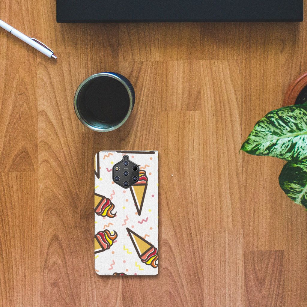 Een vrolijke Nokia 9 PureView Flip Style Cover met daarop verschillende ijsjes. Als je daar geen zomers gevoel meer van krijgt, weten wij het ook niet meer. De zomer en ijsjes zijn onlosmakelijk met elkaar verbonden. Tijdens een bezoekje aan het strand mag een lekker ijsje bijvoorbeeld niet ontbreken. Een design hoesje met lekkere Icecream print past daar natuurlijk ook ontzettend goed bij. Jouw telefoon is helemaal beschermd met een stand case met ijsjes design. De aankoop van deze case is een heerlijke investering, die zich gegarandeerd terugbetaalt. Alle zijden van dit hoesje worden bedrukt met ijsjes. De case heeft een speciale standaard en de houder aan de binnenzijde is van TPU. Onder alle weersomstandigheden zal deze case met opbergvakje perfect functioneren, ook in de zomer met een ijsje in je hand. Dit smaakvolle hoesje is zeer goedkoop te bestellen en wordt zeer snel bezorgd.