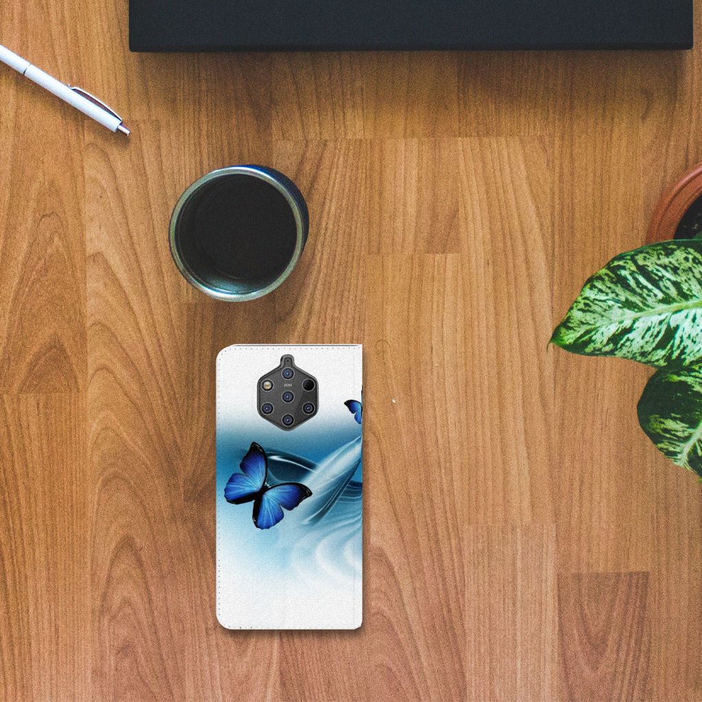 Deze vrolijke Nokia 9 PureView Hoesje maken met blauwe vlinders is een ware eyecatcher. De meeste vlinders hebben een onopvallende vleugelkleur, andere soorten hebben juist heldere en felle kleuren. Wij kunnen deze blauwe vlinders op een zeer handige stand case zetten. Deze hoesjes zijn het meest gewild. Met onze geavanceerde printer zetten we de afbeelding van vlinders op alle zijden van het hoesje. De case met vlinders heeft aan de binnenkant een houder waarin je jouw creditcard of ander pasje kwijt kunt. De case heeft bovendien een handige standaard. Verder is je telefoon natuurlijk maximaal beschermd met deze stand case met print van blauwe vlinders. De houder aan de binnenzijde van het design hoesje met vlinder print is van TPU.