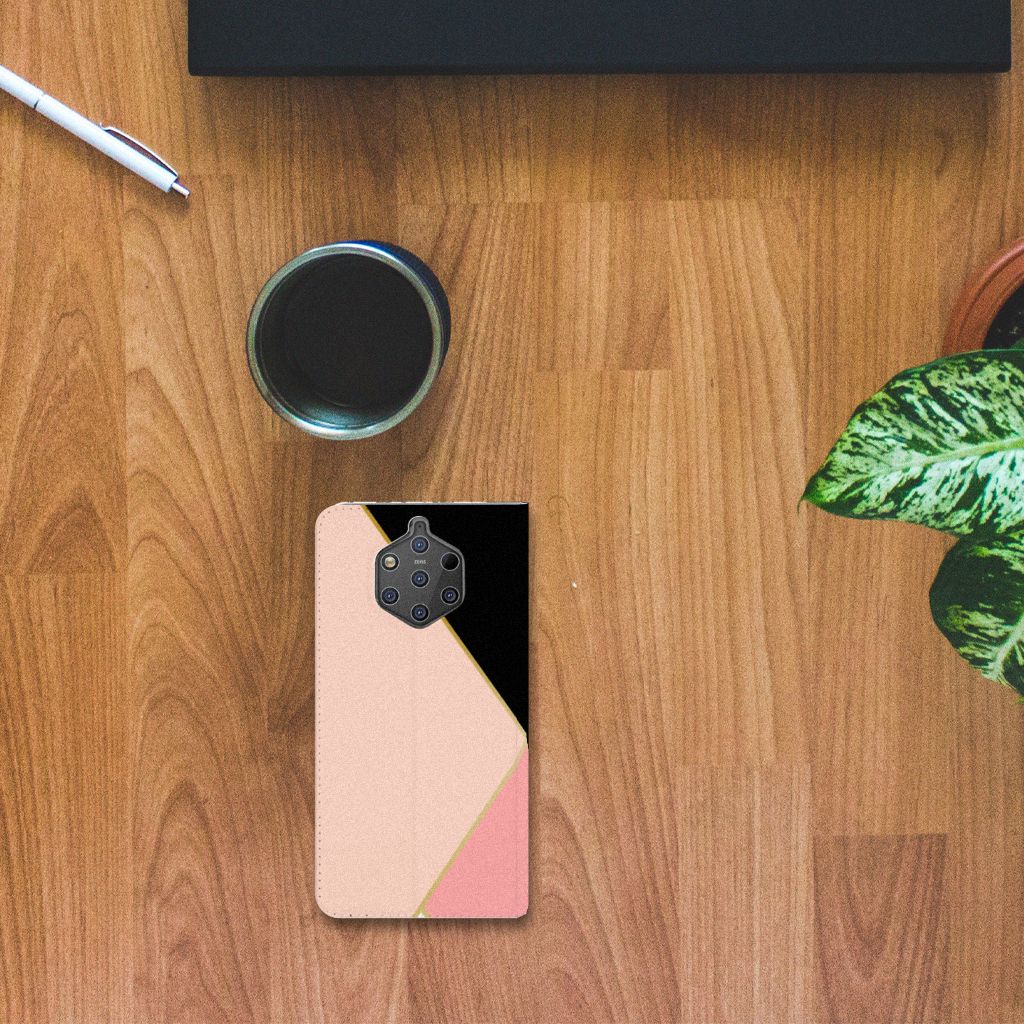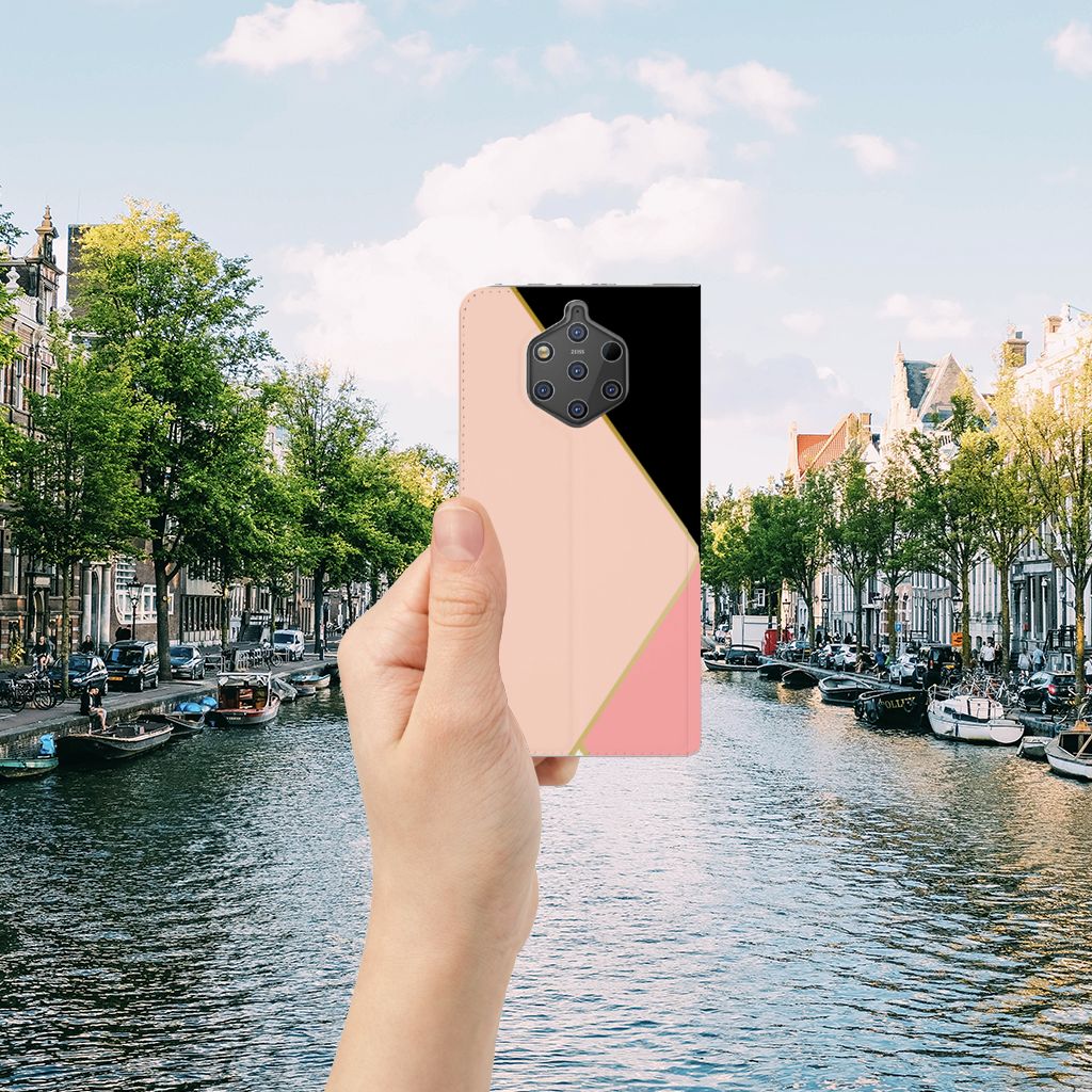 Nokia 9 PureView Print Stand Case Zwart Roze Vormen