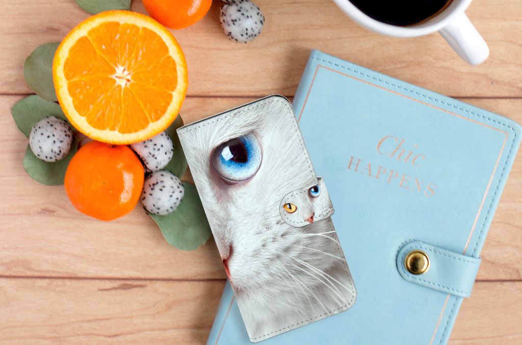 Witte katten zijn erg bijzonder en dat is precies de reden dat wij deze op prominente wijze op dit design hoesje hebben geplaatst. Maar deze witte kat is extra speciaal, doordat de ogen twee verschillende kleuren hebben: blauw en vurig rood. Hiermee heb jij als uniek mens ook een unieke bookcase. Ook de manier waarop dit telefoonhoesje voor de Nokia C2 2nd Edition is bedrukt, is bijzonder. Je ziet namelijk een kleinere versie van dezelfde kat terug op het lipje. Hierdoor zie je de speciale witte kat twee keer terugkomen op jouw hoesje. Omdat je waarschijnlijk een dierenliefhebber bent als je dit Telefoonhoesje met Pasjes uitkiest, is dit ook een erg duurzaam hoesje. Het hoesje wordt aan alle kanten met duurzame inkt bedrukt.