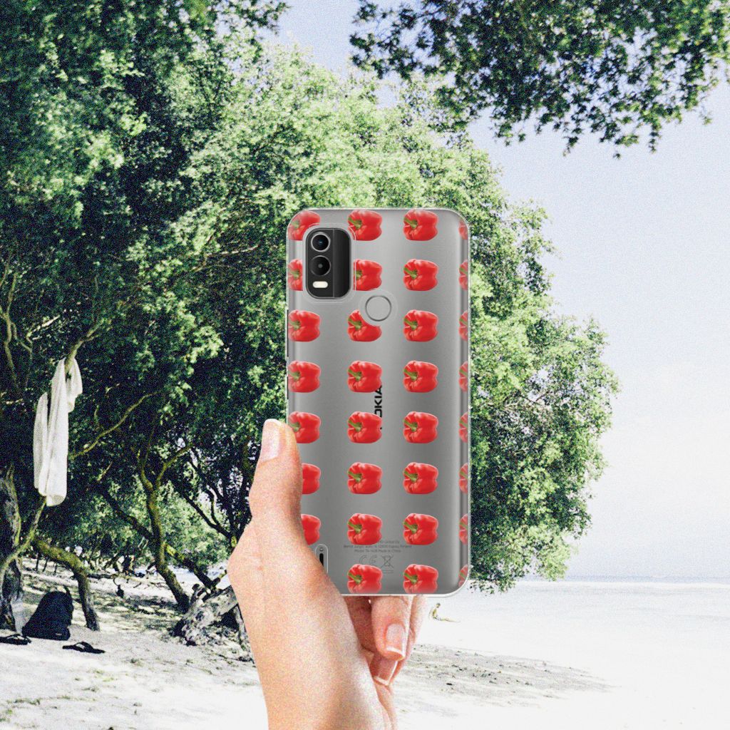 Er zit pit in jouw Nokia C21 Plus Siliconen Case dankzij dit design met rode paprika’s. Paprika’s zijn er in allerlei kleuren en vormen en ze hebben gemeen dat ze heel erg gezond zijn. De rode paprika’s op deze case staan op een grijs met witte geblokte achtergrond en vormen een opvallende verschijning. Heb jij ooit iemand in je nabije omgeving rond zien lopen met een design hoesje met rode paprika’s? Waarschijnlijk niet. Dit hoesje wordt alleen aan de bovenkant bedrukt met paprika’s en is zeer flexibel. De randen van het hoesje blijven transparant en worden niet bedrukt. Met dit hoesje past jouw telefoon altijd in je broekzak. Zeker weten dat je met dit hoesje met rode paprika’s een smartphone accessoire te pakken hebt waarmee je jezelf in de schijnwerpers zet. Als je andere kleuren paprika’s op je hoesje wilt, raden we je aan ons assortiment design hoesjes te bekijken of zelf een hoesje te ontwerpen.