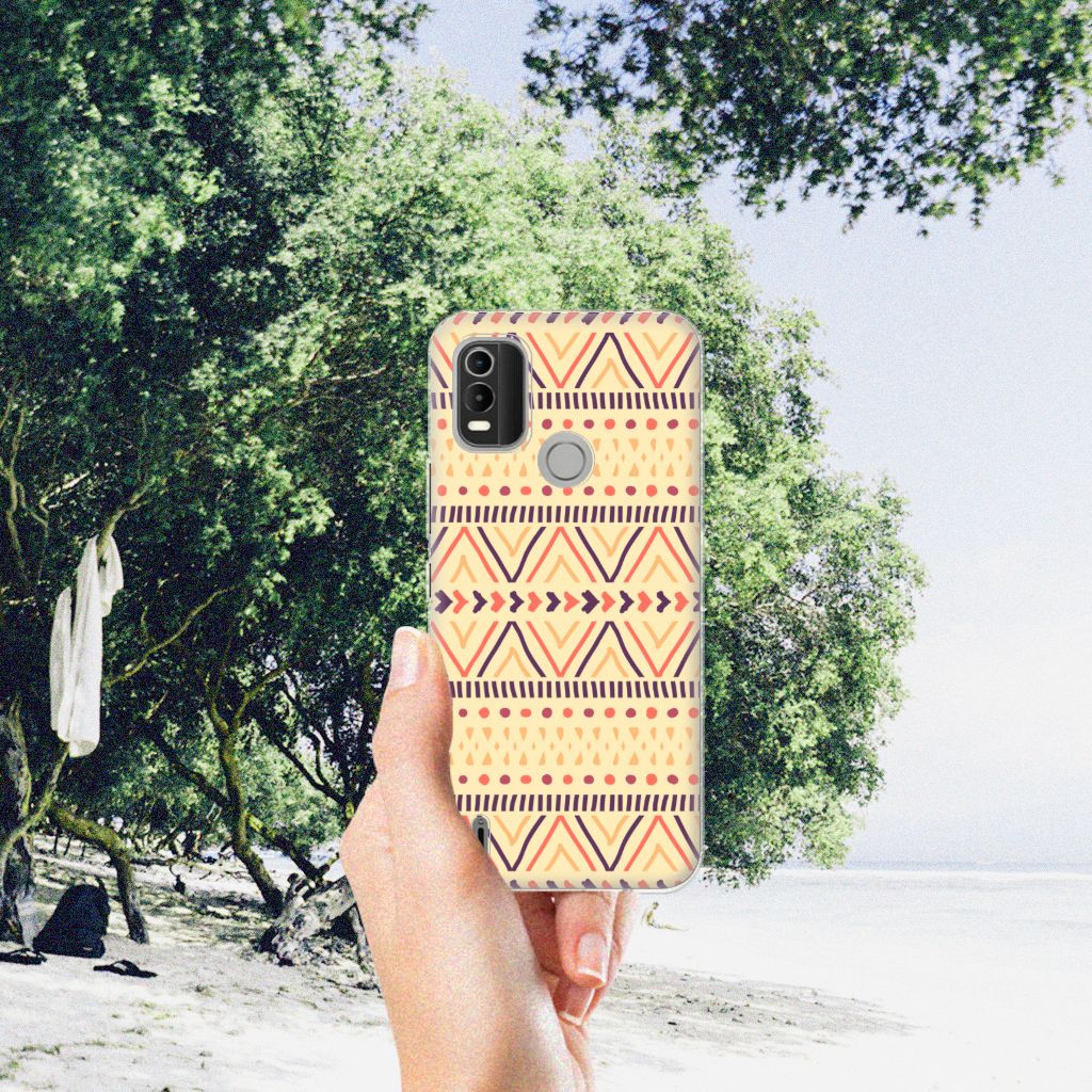 De Azteken leefden tussen 1200 en 1521 in het huidige Mexico. De mooie Aztec-patronen waar zij bekend om stonden, zien we nu nog op kleding, stoffen en tassen. Wie had toen kunnen bedenken dat we diezelfde prints honderden jaren later zelfs op een telefoonhoesje zouden vinden? Dit kleurrijke Aztec Yellow-hoesje is perfect voor iedereen die een stukje geschiedenis bij zich wil dragen maar ook gewoon een mooi patroon op zijn hoesje wil. Dit vrolijke, kleurrijke ontwerp staat op een TPU bumper voor de Nokia C21 Plus. TPU is flexibel en onbreekbaar. Zo is je telefoon aan de achterkant en de randen heel goed beschermd. De case is aan de bovenkant bedrukt, de randen blijven transparant.