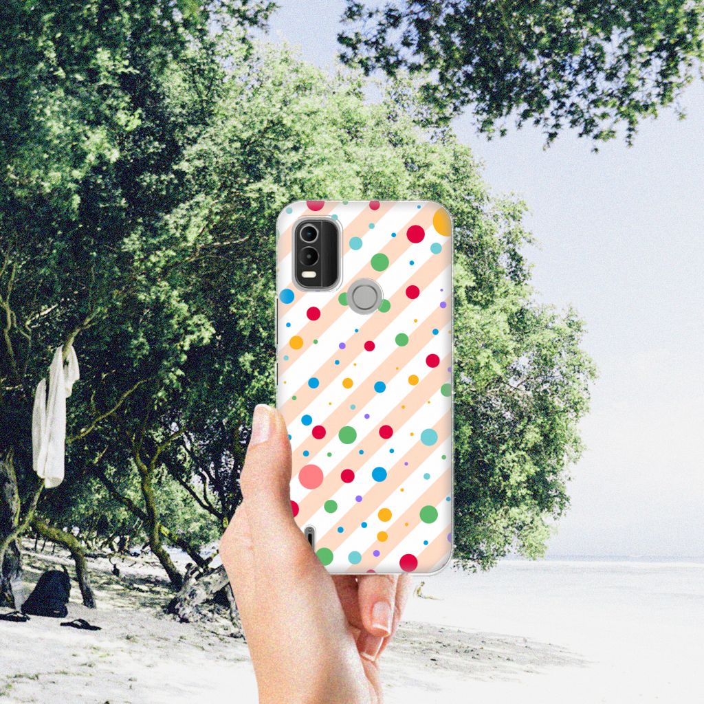 Een Nokia C21 Plus TPU bumper met verschillende kleuren stippen is een schitterende bescherming van jouw smartphone. De tpu case met het design Dots in alle kleuren van de regenboog komt voor jou als geroepen. Maak je geen gebruik van dit zeer mooie hoesje, dan kan het met jouw smartphone een beetje beroerd aflopen. Deze mooie tpu case met verschillende soorten klompen in verschillende kleuren is zo’n beetje de meest flexibele case die er bestaat. Het hoesje met stippen zorgt voor een goede bescherming van je smartphone, vooral aan de achterzijde en zijkanten. Met een tpu hoesje met stippen in verschillende kleuren blijft jouw gsm volledig in tact. Heb je liever een tpu case met stippen in andere opvallende kleuren? Ontwerp dan zelf een tpu case met je eigen foto’s en teksten! De case wordt aan de achterzijde bedrukt met klompen, de zijkanten blijven doorzichtig.