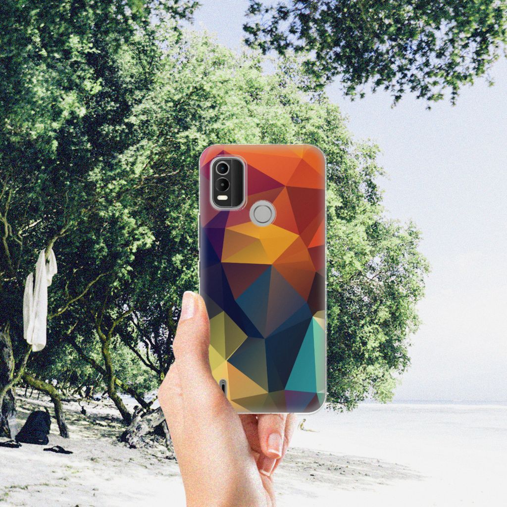 Veelkleurige driehoeken die samen eindeloze asymmetrische patronen lijken te vormen. Het is het abstracte schouwspel dat op dit fraaie hoesje voor je Nokia C21 Plus direct de aandacht trekt noemen we voor het gemak trekt noemen we voor het gemak Polygon Color. De een ziet er een berglandschap in, de ander piramides. Wat zie jij erin? Zeker is in elk geval dat de aanblik van dit fascinerende ontwerp je niet snel gaat vervelen. Het kleurige spel van lijnen en vlakken blijft eindeloos boeien en geeft jouw TPU Hoesje een hippe en kunstzinnige uitstraling. De kracht die het lijnenspel uitstraalt, komt ook terug in het hoesje zelf. Dit hoesje wordt alleen aan de bovenkant bedrukt en is zeer flexibel. De randen van het hoesje blijven transparant. Wat wil je nog meer?