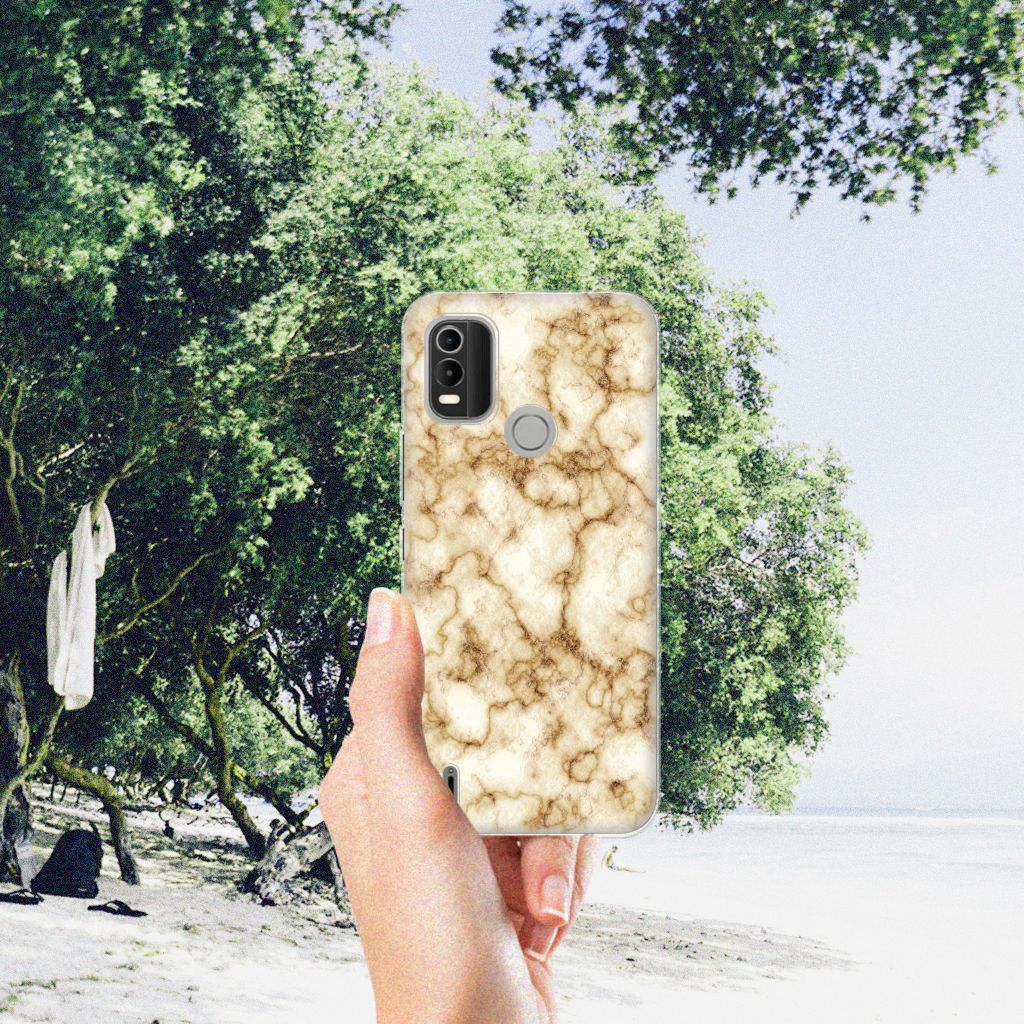 Deze Nokia C21 Plus TPU Siliconen Hoesje met Marmer Goud is het waard om een blokje voor om te rijden. Dit is overigens niet nodig. Als je het hoesje met goud marmer nu bestelt heb je het zeer snel in huis. Je kunt er bij wijze van spreken thuis op gaan zitten wachten. Je hebt diverse soorten marmer. We hebben enkele fraaie kleuren op onze hoesjes gezet, zoals in dit geval het gouden marmer. Het goud marmer wordt bedrukt op de achterkant van de tpu case, die beschikt over alle nodige uitsparingen waardoor je alle knoppen en poorten van je smartphone kunt bedienen. Verder is de case met goud marmer gemaakt van zeer flexibel materiaal. De rijkheid aan kleuren en varianties in afwerking is een schitterende eigenschap van marmer. Dit tpu hoesje met goud marmer heeft ook veel schitterende eigenschappen en is de ideale bescherming voor jouw smartphone.