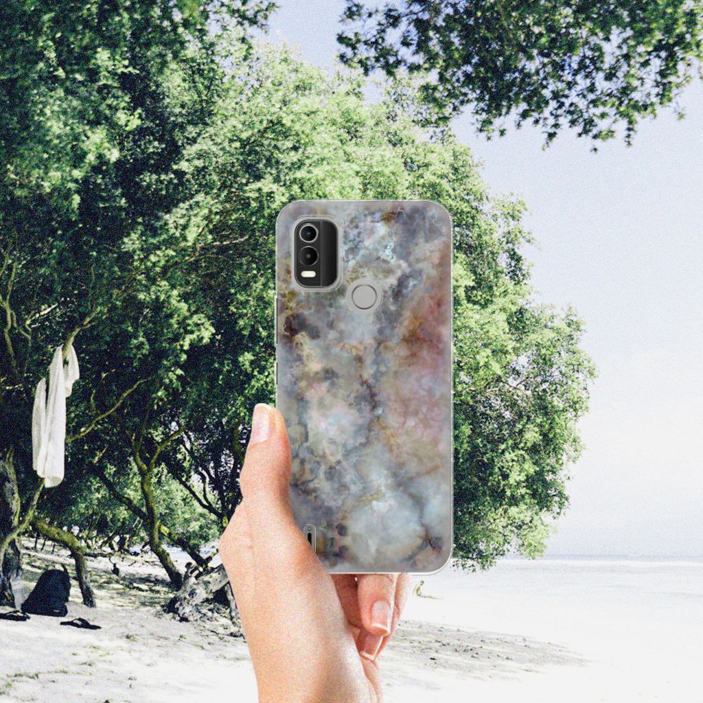Nokia C21 Plus TPU Siliconen Hoesje Marmer Creme