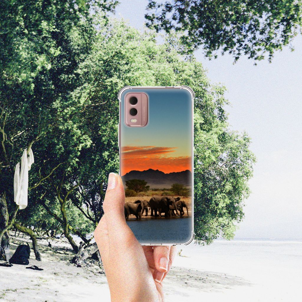 Ben je op zoek naar een uniek telefoonhoesje voor je Nokia C32? Dan ben je bij B2C Telecom aan het juiste adres! Speciaal voor jou hebben we dit prachtige Olifanten in onze collectie hoesjes opgenomen. Het design wordt bedrukt op een Case Anti-shock en is gemaakt van flexibel rubber. Het hoesje is perfect voor de actieve smartphonegebruiker door de opstaande randen/hoeken. Denk aan mensen die veel sporten, reizen of wandelen en net iets meer zekerheid willen als het op hun geliefde telefoon aankomt. Het design wordt alleen aan de bovenkant van het hoesje bedrukt en de randen blijven transparant. Aan de zijkanten zijn uitsparingen gemaakt waardoor je met gemak alle knoppen en poorten kunt bedienen. Wij adviseren om dit hoesje in combinatie met een screenprotector te gebruiken voor een langere levensduur van je telefoon. Wil je dit hoesje nog iets extra's geven? Voeg dan gratis je naam of een quote toe! Is dit design hoesje toch niet helemaal wat je zocht? Ontwerp dan zelf een hoesje in ons ontwerpprogramma.