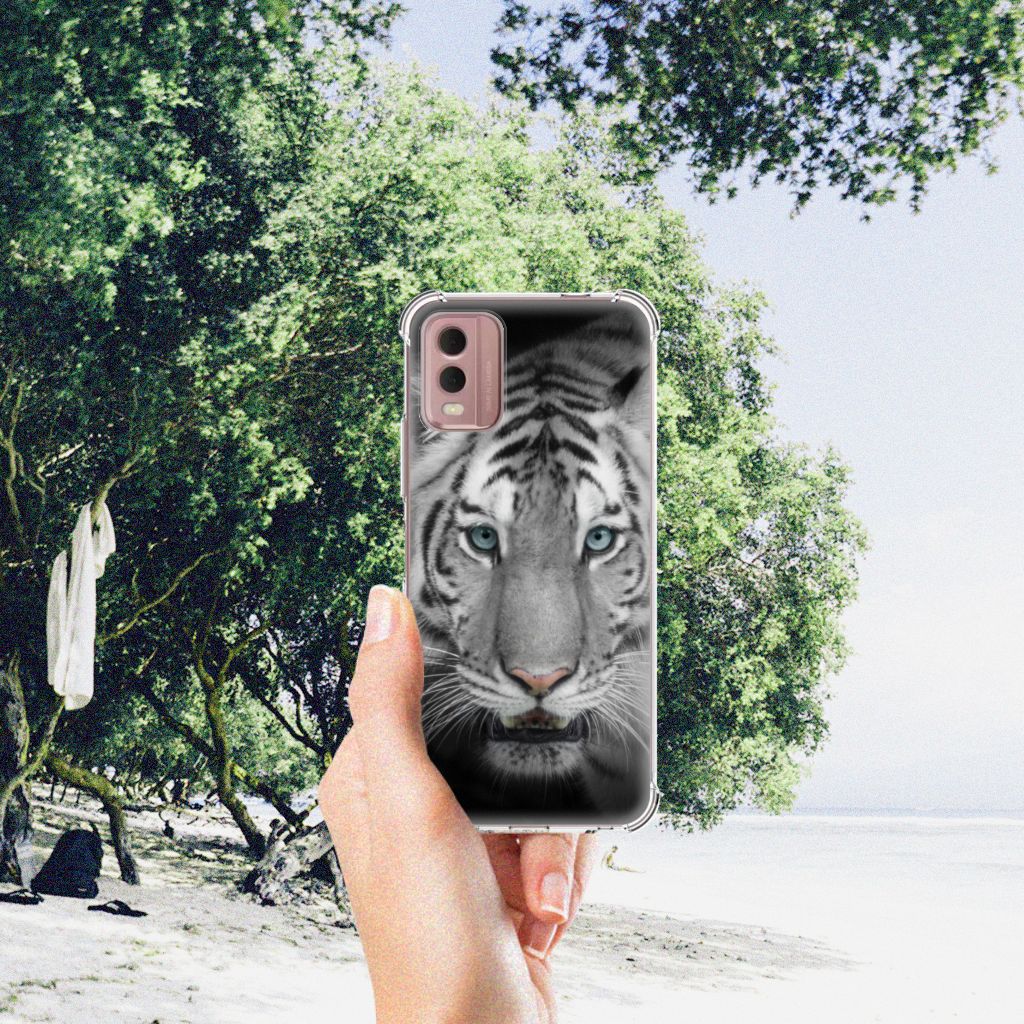 Ben je op zoek naar een uniek telefoonhoesje voor je Nokia C32? Dan ben je bij B2C Telecom aan het juiste adres! Speciaal voor jou hebben we dit prachtige Tijger design in onze collectie hoesjes opgenomen. Het design wordt bedrukt op een Case Anti-shock en is gemaakt van flexibel rubber. Het hoesje is perfect voor de actieve smartphonegebruiker door de opstaande randen/hoeken. Denk aan mensen die veel sporten, reizen of wandelen en net iets meer zekerheid willen als het op hun geliefde telefoon aankomt. Het design wordt alleen aan de bovenkant van het hoesje bedrukt en de randen blijven transparant. Aan de zijkanten zijn uitsparingen gemaakt waardoor je met gemak alle knoppen en poorten kunt bedienen. Wij adviseren om dit hoesje in combinatie met een screenprotector te gebruiken voor een langere levensduur van je telefoon. Wil je dit hoesje nog iets extra's geven? Voeg dan gratis je naam of een quote toe! Is dit design hoesje toch niet helemaal wat je zocht? Ontwerp dan zelf een hoesje in ons ontwerpprogramma.
