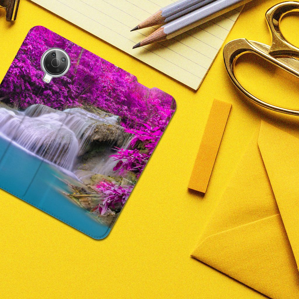 Van een waterval kun je een heel rustig gevoel krijgen, zeker als die op een Nokia G10 | G20 Book Cover staat dat jouw smartphone perfect beschermt tegen allerlei vormen van schade zoals krassen, barsten en scheuren. In de buurt van een waterval ben je tijdens warme zomerdagen niet alleen verzekerd van aangename verkoeling, het is ook een bijzonder rustgevende ervaring. Uit onderzoek blijkt zelfs dat watervallen een helend effect hebben op allerlei aandoeningen. Extra bijzonderheid aan de stand case vormen de paarse bossen op de achtergrond. Dit smartphonehoesje beschermt jouw telefoon aan alle zijden en beschikt over een opbergvakje voor pasjes en briefgeld. De case sluit perfect af dankzij de magneten van binnen. De houder aan de binnenzijde is van TPU. Alle zijden van het hoesje worden bedrukt. Een mooiere waterval met paarse achtergrond kom je op geen enkel ander hoesje tegen.