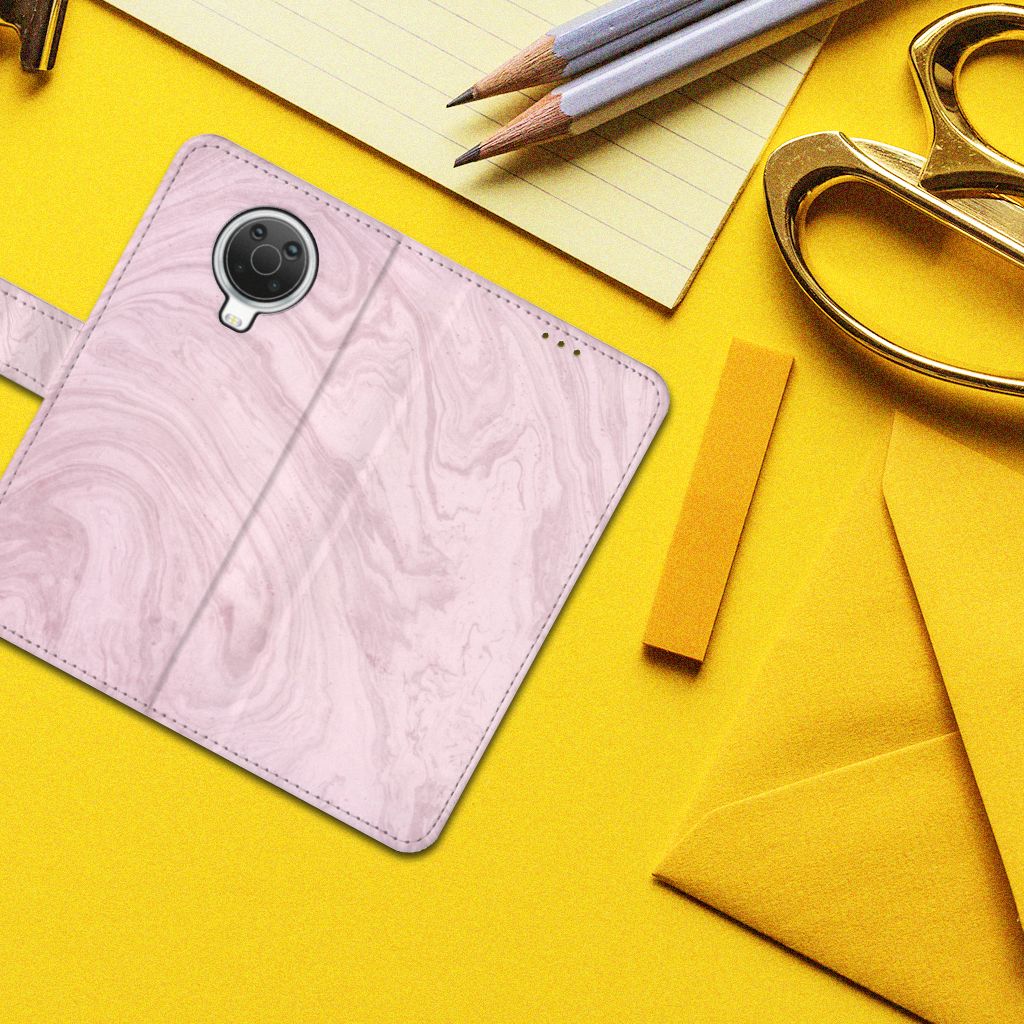 Nokia G10 | G20 Bookcase met magnetische sluitclip Marble Pink