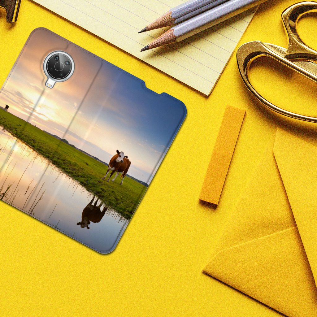 Het levert een idyllisch plaatje op, dit hoesje met een koe en ondergaande zon op de achtergrond. Door een koe buiten te laten lopen en grazen, hebben ze minder kans om ziek te worden. De Koe graast het liefst met soortgenoten, al zijn deze een stukje van de koe op de case verwijderd. Dit levert ook een mooi plaatje op, zoals je kunt zien op dit design hoesje. Deze stand case ziet er strak uit en is voorzien van verschillende uitsparingen. Een Nokia G10 | G20 Hoesje maken met magneet aan de binnenzijde beschermt jouw smartphone overal. Alle zijden zijn bedrukt. Koeien hebben lange graasperioden nodig, afgewisseld door rust- en herkauwperioden. Zo goed als grazen voelt voor koeien, zo lang zal jouw design hoesje meegaan. De binnenkant van de stand case is van TPU, de buitenzijde van leer.