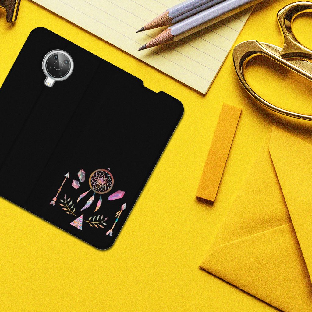 Een dromenvanger werd lang geleden al door een indianenvolk in Noord-Amerika gebruikt om nare dromen te weren. Nu nog hangen mensen over de hele wereld dromenvangers boven hun bed. Maar ook op een telefoonhoesje staat zo’n boho dreamcatcher heel mooi. Dit mooie design dat bestaat uit een tipi, pijlen en dromenvanger heeft veel verschillende prachtige kleuren. Maar omdat het ontwerp minimalistisch en klein is, is het design toch subtiel te noemen. Dit ontwerp staat op een Magnet Case voor je Nokia G10 | G20. Dit populaire smartphonehoesje heeft één vakje voor een pasje of briefgeld en is aan alle zijden bedrukt. Met de standcase zet je je telefoon gemakkelijk neer, zodat je je handen vrij hebt als je bijvoorbeeld een video wilt kijken. De binnenkant van de standcase is van grijs PU-leer. Dat is fijn, omdat je daardoor niet snel vlekken ziet op je hoesje.