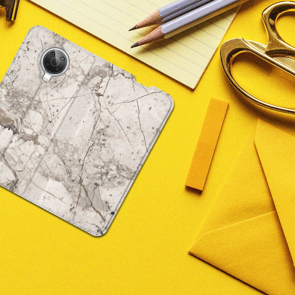 Dit design hoesje met Marmer Beige is voor de artistieke personen onder ons. De Grieken en Romeinen wisten het steen al te waarderen door het als bouw- en bekledingsmateriaal toe te passen. Naast het witte Carrara marmer met haar zacht grijze geaderde belijning zijn de diverse marmersoorten in een ruim kleurenpallet te krijgen. We hebben verschillende kleuren op design hoesjes gezet, zoals in dit geval beige marmer. Dit is een Nokia G10 | G20 Standcase met marmer in beige kleur. Het marmer wordt bedrukt op alle zijden van een stand case, die beschikt over 1 vakje voor een pasje en toebehoren en een magnetische sluiting aan de binnenkant. Verder heeft de case een houder van TPU. De rijkheid aan kleuren en varianties in afwerking geeft designers de vrijheid om met marmer hele mooie architectonische projecten te realiseren. Wij hebben onze designer ook veel vrijheid gegeven. Het resultaat zie je terug in deze stand case met beige marmer, dat de ideale bescherming voor jouw smartphone biedt.