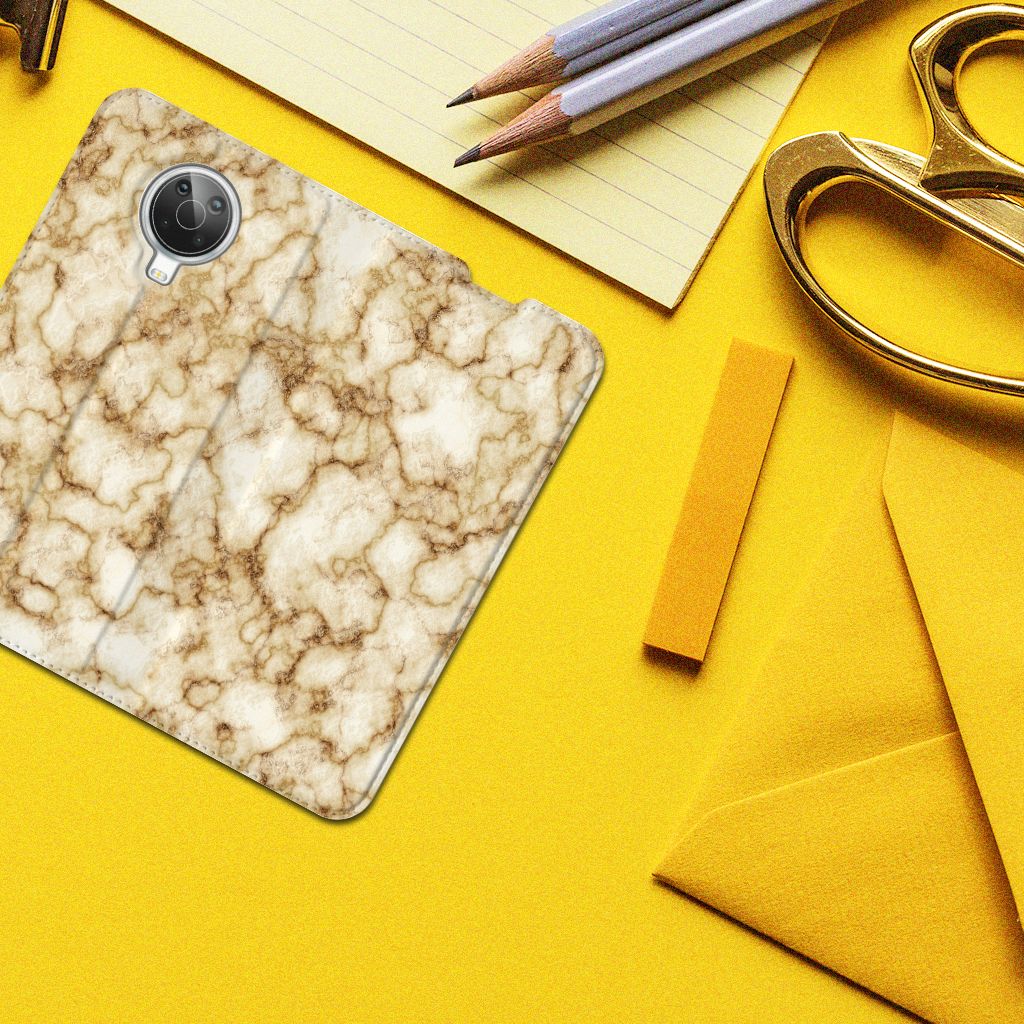 Deze Nokia G10 | G20 Standcase met Marmer Goud is het waard om een blokje voor om te rijden. Dit is overigens niet nodig. Als je het hoesje met goud marmer nu bestelt heb je het zeer snel in huis. Je kunt er bij wijze van spreken thuis op gaan zitten wachten. Je hebt diverse soorten marmer. We hebben enkele fraaie kleuren op onze hoesjes gezet, zoals in dit geval het gouden marmer. Het gouden marmer wordt bedrukt op alle zijden van de stand case, die beschikt over een vakje voor pasjes of briefgeld en een magnetische sluiting aan de binnenzijde. Verder heeft de case met goud marmer een houder van TPU. De rijkheid aan kleuren en variaties in afwerking is een schitterende eigenschap van marmer. Dit stand hoesje met goud marmer heeft ook veel schitterende eigenschappen en is de ideale bescherming voor jouw smartphone.