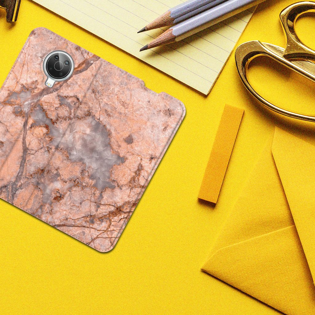 Dit design hoesje met Marmer Oranje is zeer geschikt voor jouw kostbare telefoon. Vanwege zijn prachtige lichtval en vastheid is marmer een zeer gewild bouwmateriaal. Wij kunnen inmiddels concluderen dat dit hoesje met oranje marmer ook zeer gewild is. Beloon jezelf en je telefoon met dit hele mooie Nokia G10 | G20 Standcase. Naast het oranje marmer zijn er de diverse marmersoorten in een ruim kleurenpallet te krijgen. Deze stand case met marmer in oranje wordt bedrukt op alle zijden. De case beschikt over een vakje voor een pasje en toebehoren en een magnetische sluiting aan de binnenzijde. Verder heeft de case in oranje marmer een houder van TPU. Wij hebben onze designer veel vrijheid gegeven met het ontwerpen dit mooie hoesje. Het resultaat zie je terug in deze stand case met oranje marmer, dat de ideale bescherming is voor jouw smartphone. Des te mooi dat wij voor variatie hebben gekozen door een hoesje met oranje marmer aan de bieden.