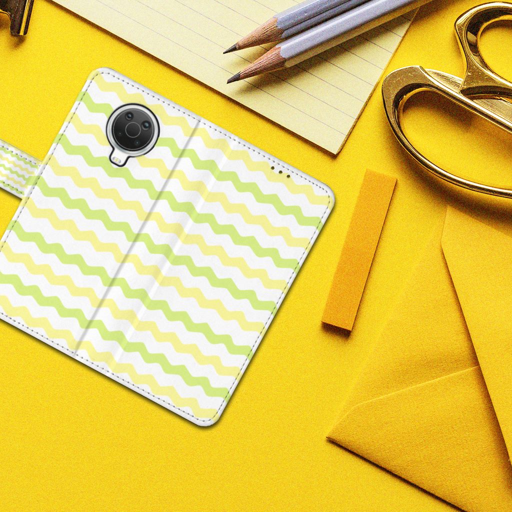 Dit Waves Yellow design hoesje met licht groene en gele golven is speciaal ontworpen voor jouw telefoon. We hebben een vleugje lichtgeel toegevoegd, zodat de case er een beetje spannender en leuker uitziet. Dit licht groene hoesje met licht groene golven ziet er oogstrelend uit. Het wordt in ons eigen magazijn bedrukt, in zeer goede kwaliteit inkt. Wij kunnen dus een zeer duurzaam hoesje met licht groene golven garanderen. Dit hele mooie Nokia G10 | G20 Telefoon Hoesje heeft vele extra’s. Is dit licht groene design hoesje je op het lijf geschreven? Grijp dan nu je kans. Een boekhoesje met lichtgroene golven beschermt jouw telefoon aan alle zijden en beschikt over meerdere houders voor pasjes en briefgeld. De case sluit perfect af met het magnetisch lipje aan de buitenkant. De houder aan de binnenzijde is van het flexibele TPU. Alle zijden van het licht groene hoesje met golven worden bedrukt, inclusief het lipje.