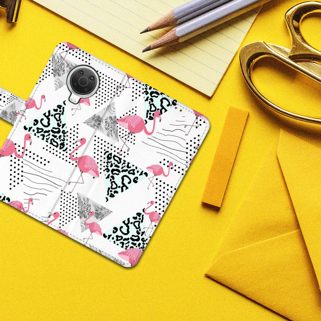 Nokia G10 | G20 Telefoonhoesje met magnetische lipje als sluiting Flamingo Triangle