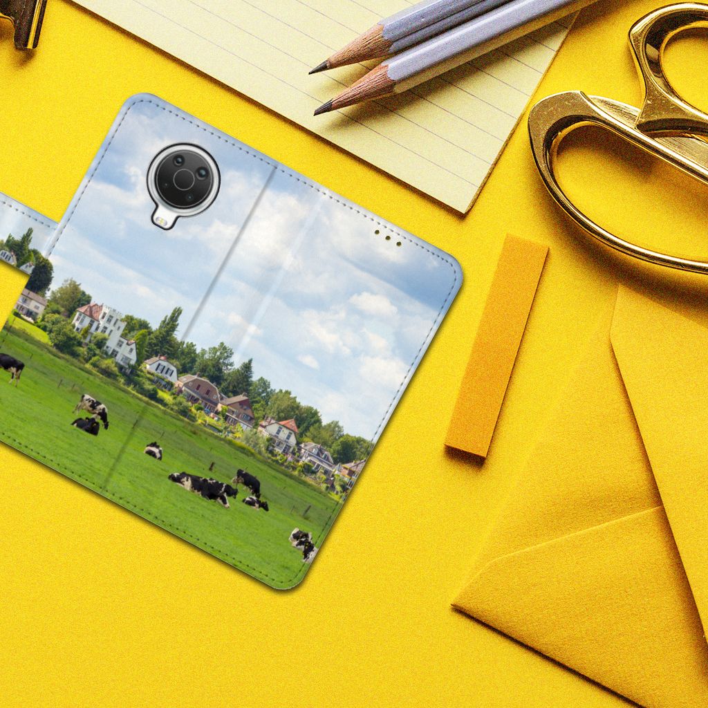 De koe is een kuddedier en graast het liefst met soortgenoten. Dit levert ook mooie plaatjes op, zoals je kunt zien op dit boekhoesje met Koeien. Dit smartphone hoesje met koeien ziet er super strak uit en is voorzien van verschillende opbergvakjes. Een Nokia G10 | G20 Telefoonhoesje met Pasjes met grazende koeien beschermt jouw smartphone perfect. Alle zijden worden bedrukt met de koeienprint, net als het afsluitlipje aan de buitenkant. Koeien hebben graasperioden van ongeveer een uur. Ze herkauwen het liefst liggend, zoals op het hoesje. Zo goed als grazen voelt voor koeien, zo duurzaam zal jouw smartphone worden met dit boekhoesje met koeien. De binnenkant van het boekhoesje met koeien is van TPU, de buitenzijde van leer.