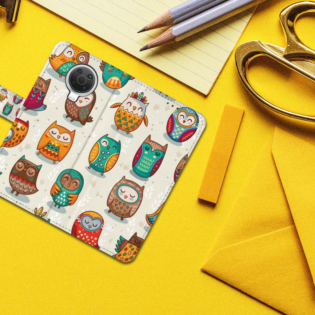 Nokia G10 | G20 Telefoonhoesje met ruimte voor drie pasjes Vrolijke Uilen