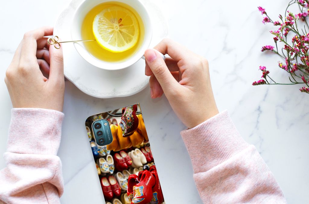 Een Nokia G11 | G21 Book Cover met klompen is een schitterende versiering voor jouw smartphone. Traditioneel worden klompen in een gele kleur gemaakt, soms met eenvoudige versieringen die van plaats tot plaats verschillen. Deze mooie stand case met verschillende soorten klompen in verschillende kleuren is zo’n beetje de veiligste case die er bestaat. Het hoesje met klompen zorgt voor een volledige bescherming van je smartphone en wordt aan alle zijden bedrukt. De case heeft een magneet aan de binnenzijde, wat zorgt voor een perfecte sluiting. Verder is de houder aan de binnenzijde van TPU. Met een stand hoesje met klompen in verschillende kleuren op alle zijden blijft jouw gsm volledig in tact. Sta je liever zelf met je eigen mooie klompen op een hoesje? Ontwerp dan zelf een stand case met je eigen foto’s en teksten! Behalve klompen kun je zelfs je gehele boerderij op de stand case zetten.