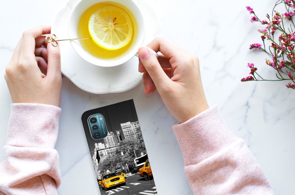 Voor de liefhebbers hebben we een design hoesje met print van New York. Om van plek A naar B te komen, nemen de meeste mensen een taxi. Omdat de taxi symbolisch is voor New York, hebben we deze ook op deze stand case gezet. Een Nokia G11 | G21 Book Cover is ook zeer handig. Vanwege onder meer het opbergvakje aan de binnenzijde, maar ook door de magneet aan de binnenzijde. Dit is een magnetische sluiting. Een taxi nemen, is de makkelijkste manier om van de ene plek naar de andere plek in de stad New York te raken. Zorg ervoor, als je deze stad bezoekt, dat je telefoon goed is beschermd met dit stand hoesje. Een stand case wordt aan alle zijden bedrukt en de houder aan de binnenkant is van TPU. Tevens heeft de case een standaard, waarmee filmpjes kijken heel leuk is.