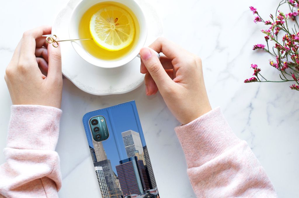 Natuurlijk mag een hoesje met de print van New York niet in onze collectie design hoesjes ontbreken. New York is immers de grootste stad van de Verenigde Staten van Amerika en een van de belangrijkste wereldsteden. Deze stad, ook wel New York City of NYC genoemd, moet je gewoon minstens eenmaal in je leven bezocht hebben. Doe je dat, dan gaat je telefoon natuurlijk mee en deze bescherm je met deze leuke Nokia G11 | G21 Book Cover met print van New York. Je pasje kun je in het opbergvakje aan de binnenzijde stoppen en de case sluit perfect af dankzij de magneet. The City That Never Sleeps, zo wordt New York ook wel genoemd. De print op deze stand case met print van New York, die een houder heeft van TPU, oogt zeer stijlvol.
