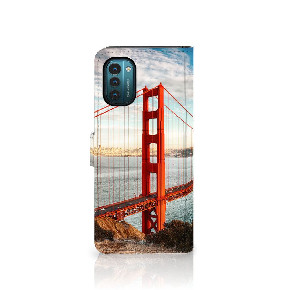 De Golden Gate Bridge is een technisch meesterwerk. Een van de langste en hoogste hangbruggen ter wereld is een schitterend staaltje van ingenieurskunst en een prachtig monument, dat met de rode kleur fel afsteekt tegen de omgeving. Dit monument komt op een fraaie manier tot uitdrukking op een Nokia G11 | G21. Het telefoonhoesje met design heeft verschillende vakjes, waarin je pasjes en briefgeld kunt stoppen. Jouw telefoon past precies in de houder van TPU. De Golden Gate Bridge is vanuit vele plekken in en rond San Francisco op een spectaculaire manier zichtbaar. Een deel van de brug komt ook op het lipje te staan, dat jouw Flip Cover aan de buitenkant perfect afsluit. Jouw telefoon is dus aan alle kanten beschermd met dit design hoesje met Golden Bridge print. Alle kanten van het telefoonhoesje worden bedrukt met foto’s.