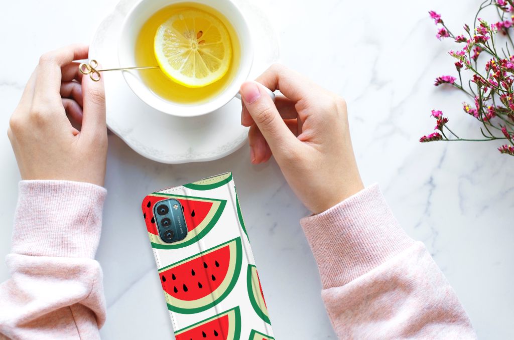 Watermeloenen zijn uitstekende dorstlessers, misschien dat je daarom juist in de zomermaanden extra enthousiast raakt van dit design hoesje Watermelons. Jij blijft gezond als je zo nu en dan een watermeloen neemt, jouw smartphone blijft in tact als je er deze Nokia G11 | G21 Flip Style Cover omheen doet. De stand case beschermt jouw telefoon aan alle kanten en beschikt over een 1 opbergvakje en een speciale standaard. Het hoesje wordt afgesloten met een magneet aan de binnenzijde. De houder aan de binnenzijde is van TPU. Je kunt ook kiezen voor andere soorten fruit op je hoesje. Kijk maar eens naar onze andere design hoesjes op onze website.