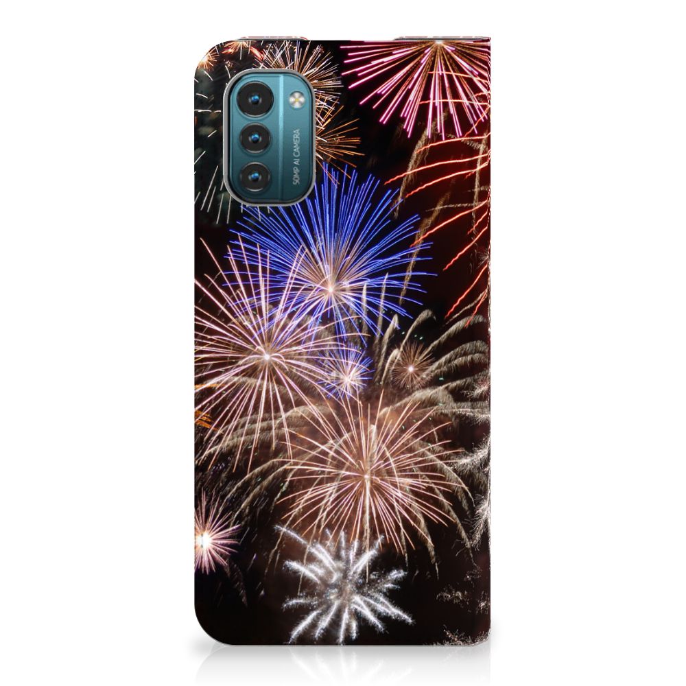 Deze Nokia G11 | G21 Hippe Standcase levert gegarandeerd Vuurwerk op. Kijk alleen al eens naar de print van siervuurwerk, in zeer veel verschillende kleuren. Als je dit hoesje ziet kun je bijna niet geloven dat sommige gemeenten in Nederland overwegen om vuurwerk te verbieden. Er gebeuren weliswaar ongelukken mee, maar zoiets schitterends als op deze stand case met vuurwerk wil je toch gewoon niet missen. Bovendien beschermt dit hoesje jouw smartphone aan alle kanten. Alle zijden van deze case worden bedrukt en met een speciale standaard is het erg prettig om filmpjes te bekijken. De case wordt aan de binnenzijde met een magneet afgesloten en de houder aan de binnenzijde is van TPU. Onder alle omstandigheden zal deze case met 1 opbergvakje perfect functioneren, ook als je met nieuwjaar vuurwerk aan het afsteken bent. Zorg dan overigens wel dat je zelf ook voldoende afgeschermd bent van het vuurwerk.
