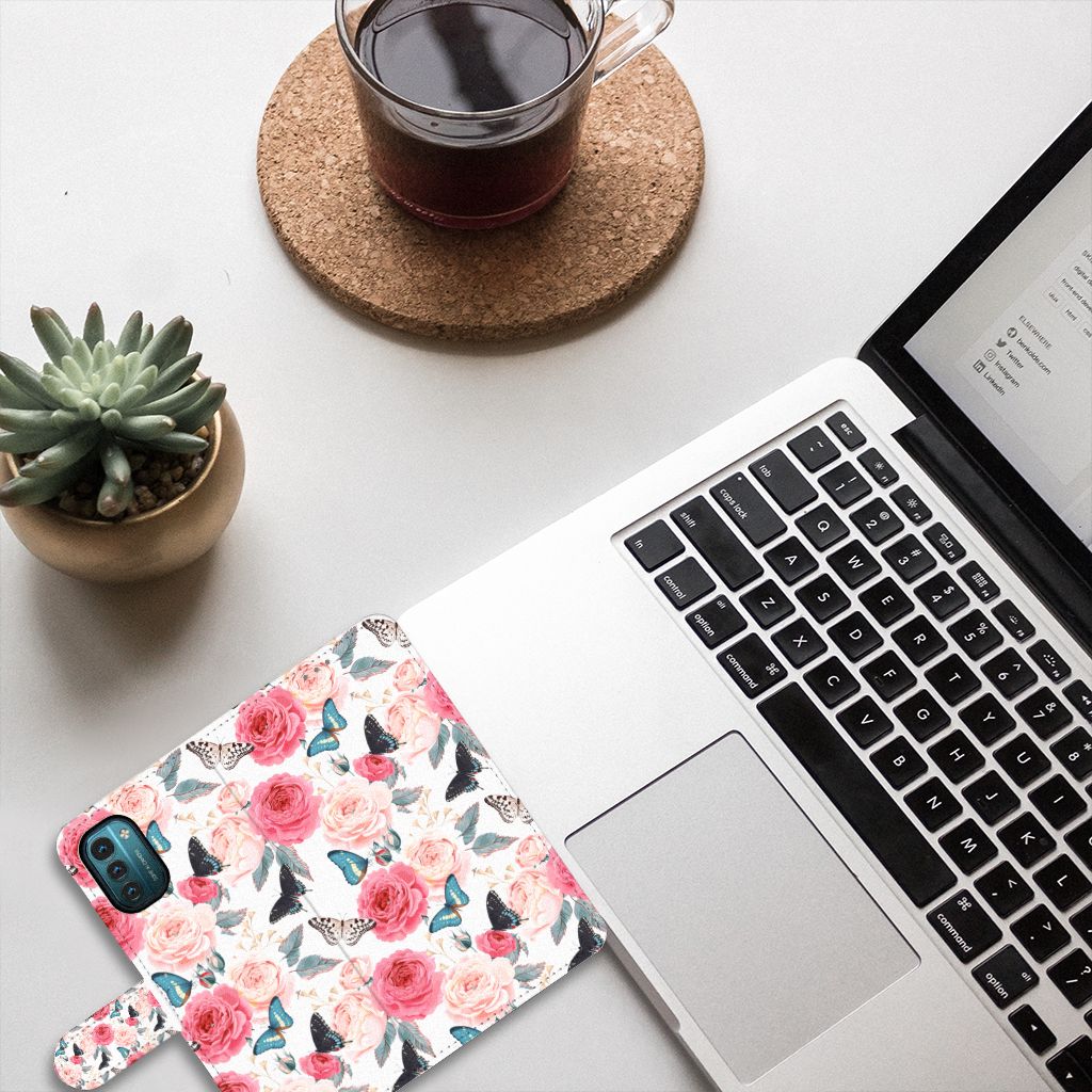 Nokia G11 | G21 Hoesje gemaakt van TPU en kunstleer Butterfly Roses