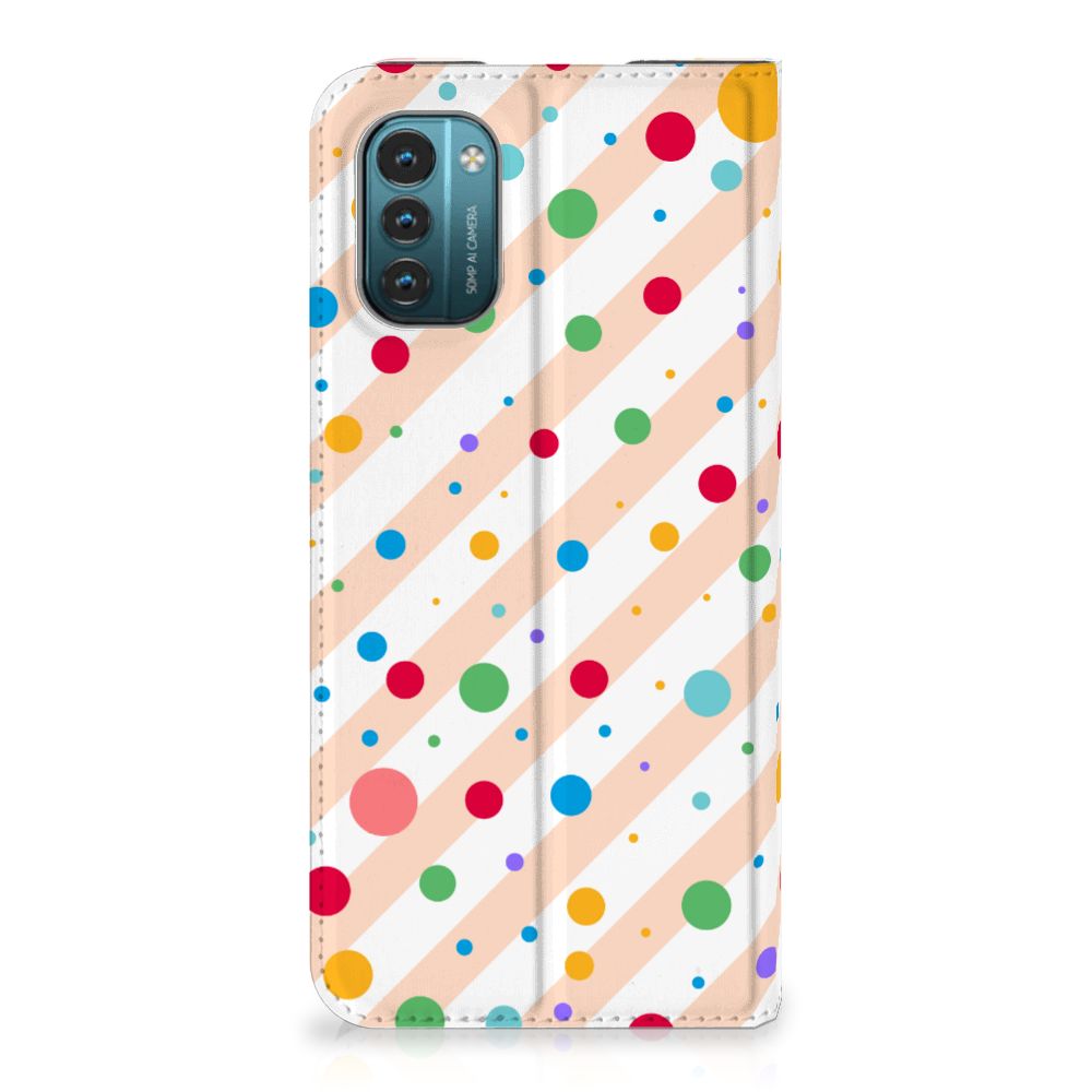 Een Nokia G11 | G21 Hoesje met Magneet met verschillende kleuren stippen is een schitterende bescherming van jouw smartphone. De stand case met het design Dots in alle kleuren van de regenboog komt voor jou als geroepen. Maak je geen gebruik van dit zeer mooie hoesje, dan kan het met jouw smartphone een beetje beroerd aflopen. Dit mooie stand hoesje met verschillende kleuren stippen zorgt voor een volledige bescherming van je smartphone en wordt aan alle zijden bedrukt. Dankzij de speciale standaard kun je rustig achteroverleunend filmpjes bekijken terwijl je je handen vrij hebt. Verder is de houder aan de binnenzijde van TPU. Jouw telefoon is dus zeer goed opgeborgen en kan geen kant op. Met een hoesje met stippen in verschillende kleuren op alle zijden blijft jouw telefoon volledig in tact. Heb je liever een stand case met stippen in andere opvallende kleuren? Ontwerp dan zelf case met je eigen foto’s en teksten!