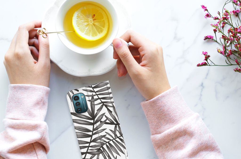 Ben je op zoek naar een uniek telefoonhoesje voor je Nokia G11 | G21? Dan ben je bij B2C Telecom aan het juiste adres! Speciaal voor jou hebben we dit prachtige Leaves Grey design in onze collectie hoesjes opgenomen. Het design wordt bedrukt op een Smart Cover en heeft een vakje aan de binnenkant voor een pasje. Het fijne aan dit hoesje is dat je het als standaard neer kunt zetten. Hierdoor geniet je nog meer als je een filmpje aan het kijken bent op je telefoon. Het hoesje wordt afgesloten door magneten aan de binnenkant. Wil je dit design hoesje nog iets extra's geven? Voeg dan gratis je naam of een quote toe! Is dit design hoesje toch niet helemaal wat je zocht? Ontwerp dan zelf een hoesje in ons ontwerpprogramma.
