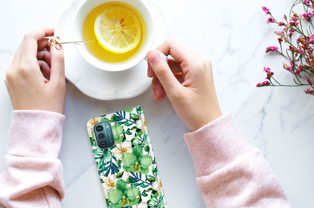 Ben je op zoek naar een uniek telefoonhoesje voor je Nokia G11 | G21? Dan ben je bij B2C Telecom aan het juiste adres! Speciaal voor jou hebben we dit prachtige Orchidee Groen design in onze collectie hoesjes opgenomen. Het design wordt bedrukt op een Smart Cover en heeft een vakje aan de binnenkant voor een pasje. Het fijne aan dit hoesje is dat je het als standaard neer kunt zetten. Hierdoor geniet je nog meer als je een filmpje aan het kijken bent op je telefoon. Het hoesje wordt afgesloten door magneten aan de binnenkant. Wil je dit design hoesje nog iets extra's geven? Voeg dan gratis je naam of een quote toe! Is dit design hoesje toch niet helemaal wat je zocht? Ontwerp dan zelf een hoesje in ons ontwerpprogramma.