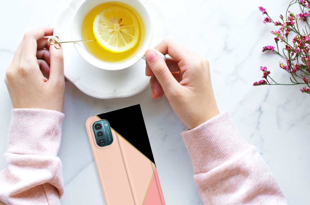 Nokia G11 | G21 Print Stand Case Zwart Roze Vormen