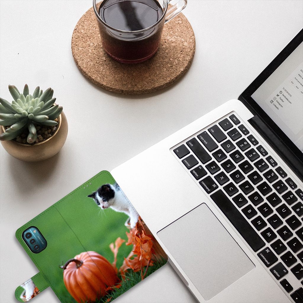 Misschien weet je wel dat huisdieren ontzettend goed voor ons zijn en voor het verlagen van onze stressniveaus. Het aaien van een kitten kan je direct kalmeren. Helaas kun je niet altijd een kitten bij je hebben. Wel kan het helpen om naar de kitten op jouw flip case te kijken als jij je gestrest voelt. Dat kan wanneer je dit Nokia G11 | G21 Telefoonhoesje met Pasjes aanschaft waar een ontzettend schattige kitten op te vinden is. Heb je zelf katten en wil je liever naar hen kijken wanneer je onderweg bent? Ook dat kan! Met onze phone case designer tool kan je voor dezelfde prijs elke foto die je wilt op de voorkant van het hoesje laten zetten. Je kunt er zelfs nog een kalmerende quote of de naam van jouw kat bijvoegen.