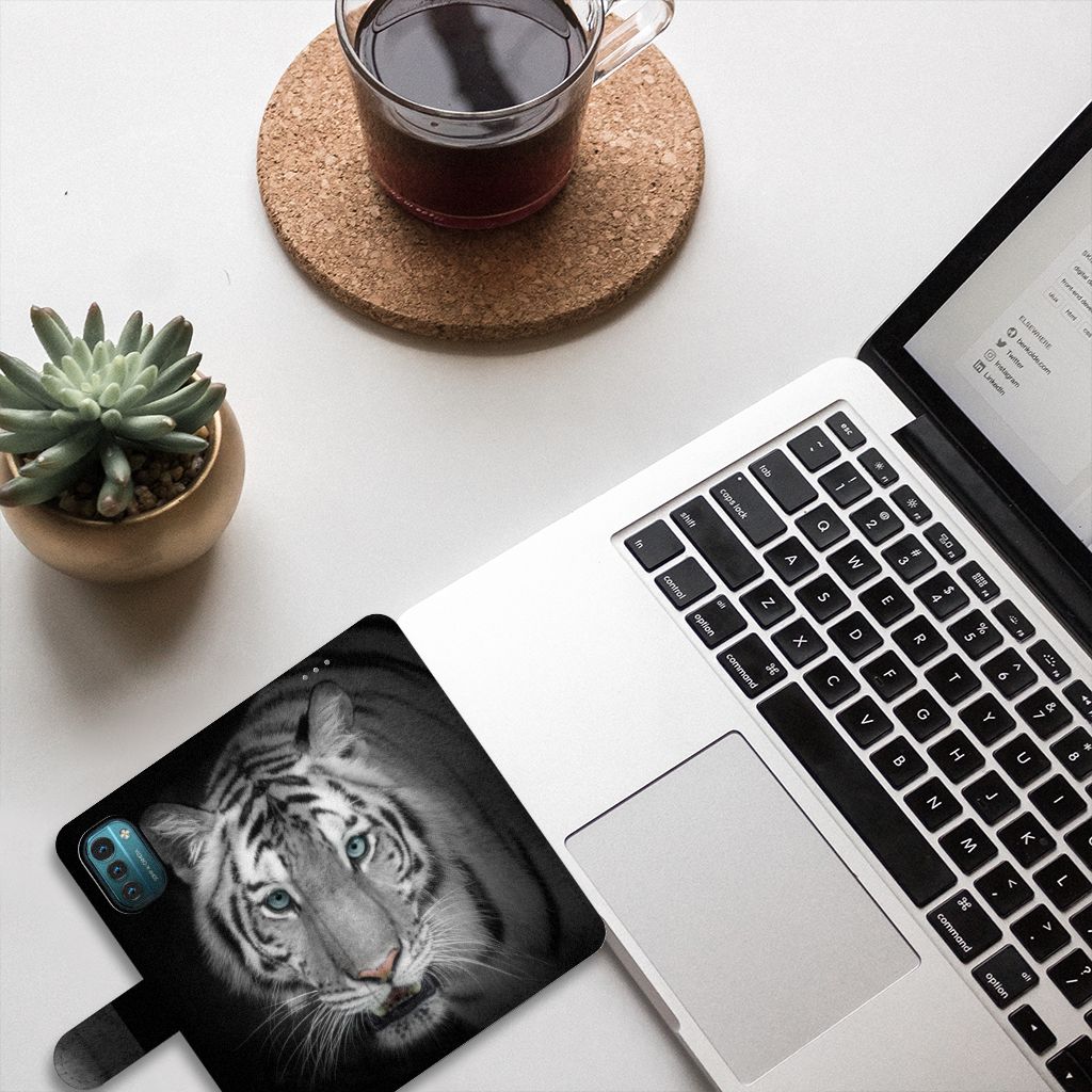 De witte tijger is een indrukwekkend dier, dus zal een bookcase met een witte tijger erop ook indruk maken. Helaas leven de dieren zelf niet meer in het wild, maar gelukkig kun jij ze nog wel op jouw boekhoesje bewonderen. Zoals een witte tijger zijn welpjes beschermd, zo zal dit hoesje jouw Nokia G11 | G21 beschermen. Het Telefoonhoesje met Pasjes is namelijk gemaakt van TPU aan de binnenzijde en kunstleer aan de buitenzijde. Op deze manier is jouw telefoon aan alle zijdes beschermd met stevig materiaal. Je telefoon blijft intact wanneer je hem per ongeluk laat vallen. Ook kun je in dit telefoonhoesje uiteraard jouw pasjes kwijt, dan kun je jouw portemonnee ook een keertje thuislaten.