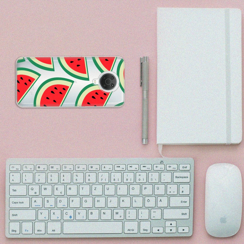 Watermeloenen zijn uitstekende dorstlessers, misschien dat je daarom juist in de zomermaanden extra enthousiast raakt van dit design hoesje Watermelons. Jij blijft gezond als je zo nu en dan een watermeloen neemt, jouw smartphone blijft in tact als je er deze Nokia G20 | G10 Siliconen Case omheen doet. Deze tpu case wordt alleen aan de bovenkant bedrukt met watermeloenen is zeer flexibel. De randen van het hoesje blijven transparant. Je kunt ook kiezen voor andere soorten fruit op je hoesje. Kijk maar eens naar onze andere design hoesjes op onze website.